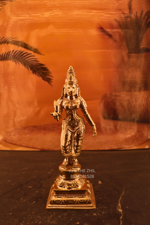 Standing Ambal is a divine representation of Goddess Ambika (Parvati), symbolizing motherly grace, protection, strength, and prosperity. Depicted in a standing posture, Ambal blesses devotees with courage, harmony, and spiritual balance. This sacred form is widely worshipped in South Indian temples and homes for well-being and divine energy.