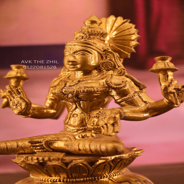 Dhanalakshmi is one of the eight forms of Ashta Lakshmi, the divine manifestations of Goddess Mahalakshmi, who bestows prosperity and auspiciousness. In this form, Dhanalakshmi represents material wealth, financial stability, abundance, monetary prosperity, and worldly comforts. She blesses her devotees with riches, success in business, and overall financial growth.
