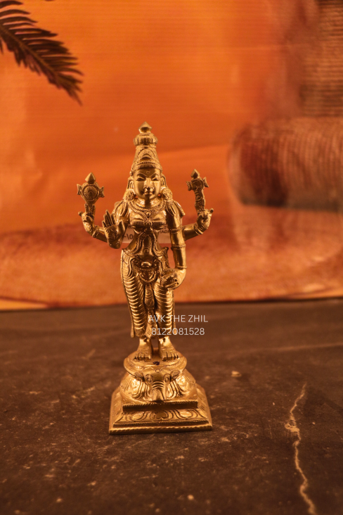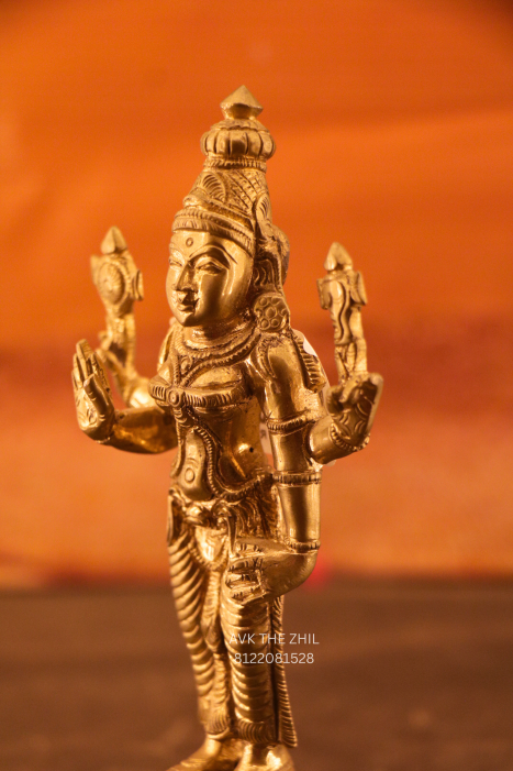 This elegant Durga Amman brass statue is meticulously handcrafted, reflecting divine grace and spiritual strength. The idol depicts the goddess standing in a classic posture, holding sacred symbols that represent protection, power, and prosperity. Crafted with smooth detailing and a rich golden brass tone, it radiates devotion and cultural heritage.