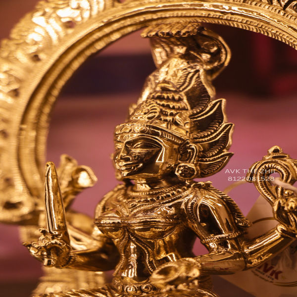 The Amman statue is placed inside an intricately designed prabhai (arch) decorated with ornamental carvings.