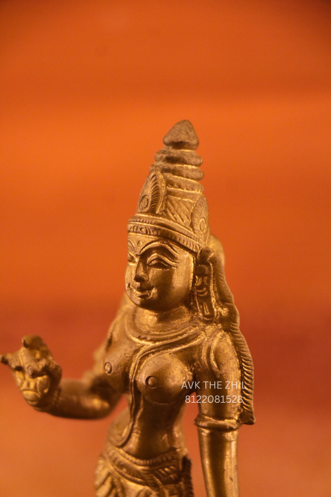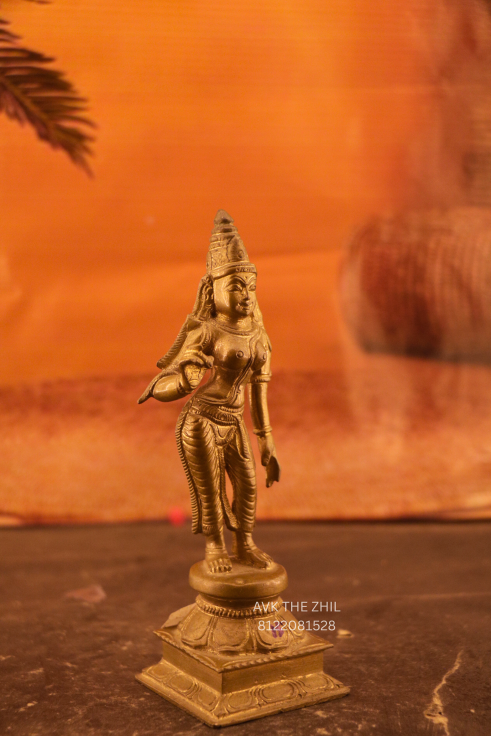 Meenakshi Amman Brass Idol is a finely crafted traditional sculpture representing Goddess Meenakshi, an incarnation of Goddess Parvati. Made from solid brass, this idol symbolizes divine grace, strength, and prosperity, making it ideal for home pooja rooms, temples, and spiritual décor.