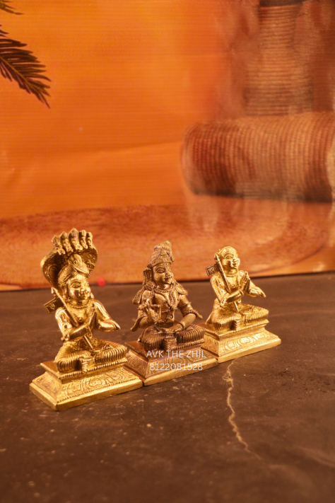 Naalvar Brass Idol Set is a finely crafted traditional sculpture representing the four revered Tamil Saivite saints, cast in solid brass. This compact idol set symbolizes devotion, wisdom, and spiritual harmony, making it ideal for home altars, pooja rooms, and sacred décor.