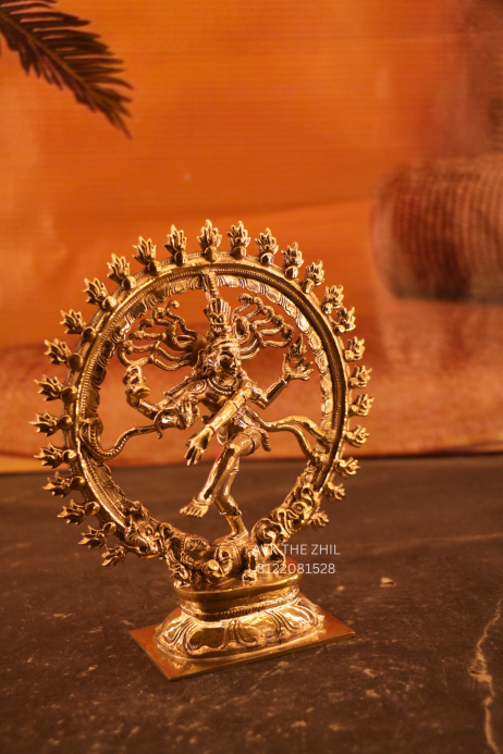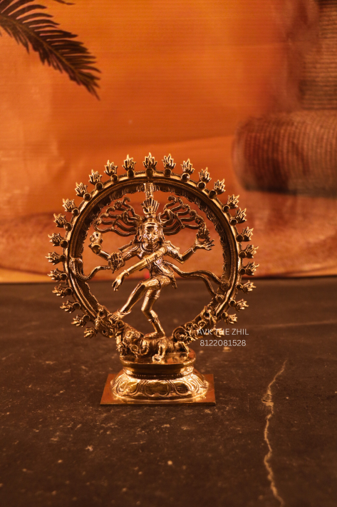 Nataraja is a sacred representation of Lord Shiva as the cosmic dancer, symbolizing the eternal cycle of creation, preservation, and destruction. This finely crafted idol captures the divine energy and rhythmic movement of Shiva in his Ananda Tandava (dance of bliss).