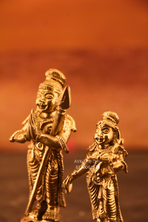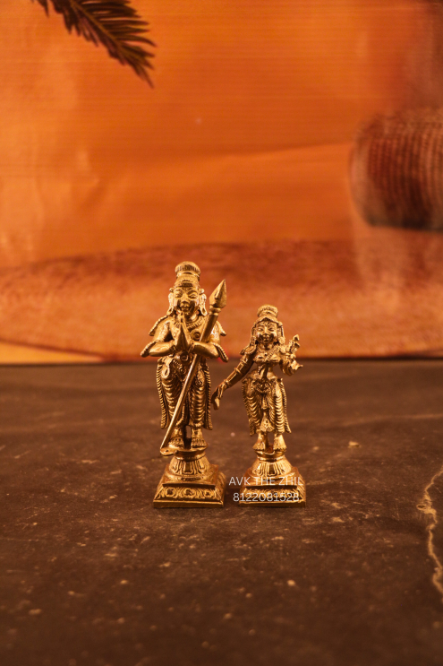 This exquisite Thirumangai Azhvar Brass Idol Set is beautifully handcrafted with intricate detailing that reflects traditional South Indian temple artistry. The idol portrays Thirumangai Azhvar in a graceful standing posture along with his consort, symbolizing devotion, wisdom, and divine service.