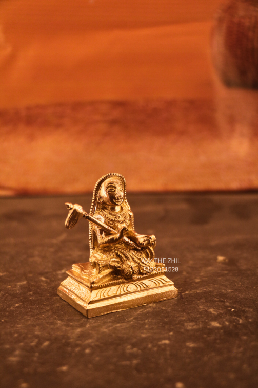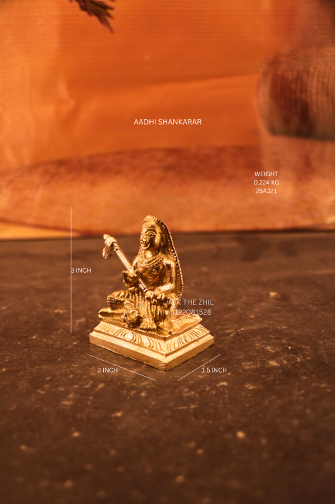 A beautifully detailed Adi Shankaracharya idol made from high-quality brass with a rich golden finish. The idol showcases Adi Shankaracharya seated gracefully on a carved pedestal, symbolizing wisdom, devotion, and spiritual enlightenment. Fine detailing on the attire and ornaments highlights skilled craftsmanship.
