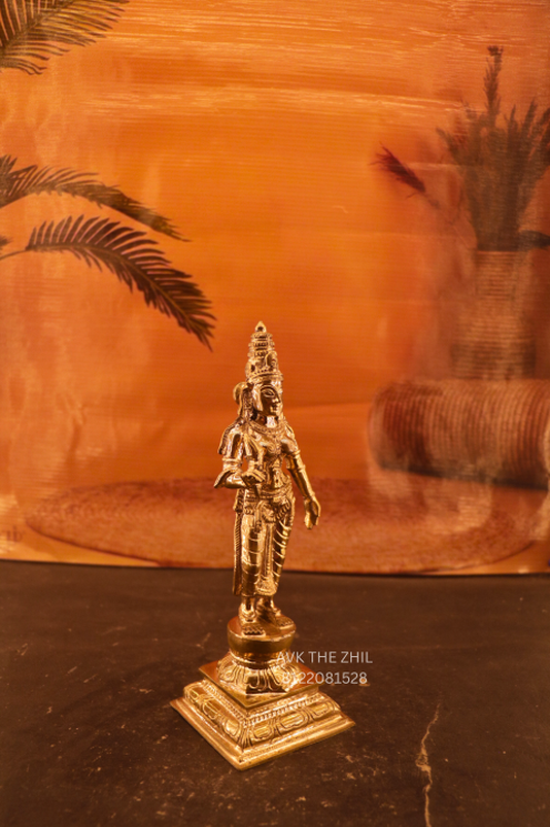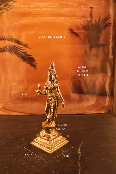 Standing Ambal is a divine representation of Goddess Ambika (Parvati), symbolizing motherly grace, protection, strength, and prosperity. Depicted in a standing posture, Ambal blesses devotees with courage, harmony, and spiritual balance. This sacred form is widely worshipped in South Indian temples and homes for well-being and divine energy.