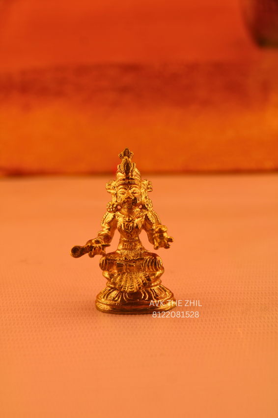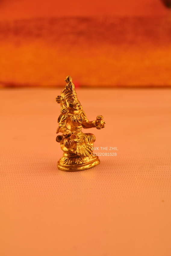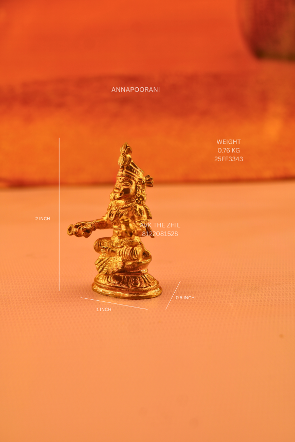 A beautifully detailed Annapoorani brass idol, designed in a compact size and finished with a rich golden tone. The craftsmanship highlights traditional South Indian iconography, making it ideal for home pooja, office desks, spiritual corners, or gifting purposes.