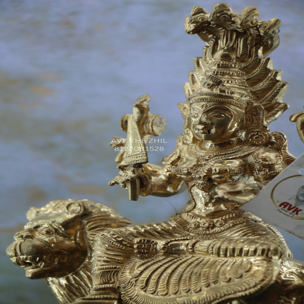 Lion Mount (Simha Vahana): Represents courage, power, and the ability to overcome fear and negativity.