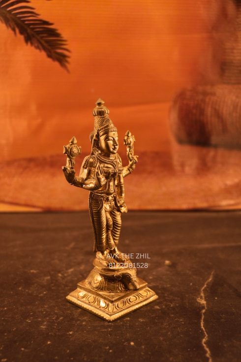 A finely crafted brass idol of Durga Amman, showcasing traditional South Indian artistry with detailed features and a polished antique finish. Ideal for worship, home décor, and gifting.