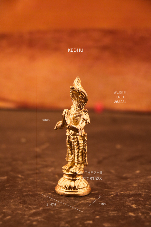 With a 3-inch height and a stable round base, this idol is perfect for home altars, Navagraha sets, pooja rooms, temples, and vastu remedies. The folded-hand posture signifies devotion and humility, while the serpent-headed form represents Kethu’s mystical and transformative energy.