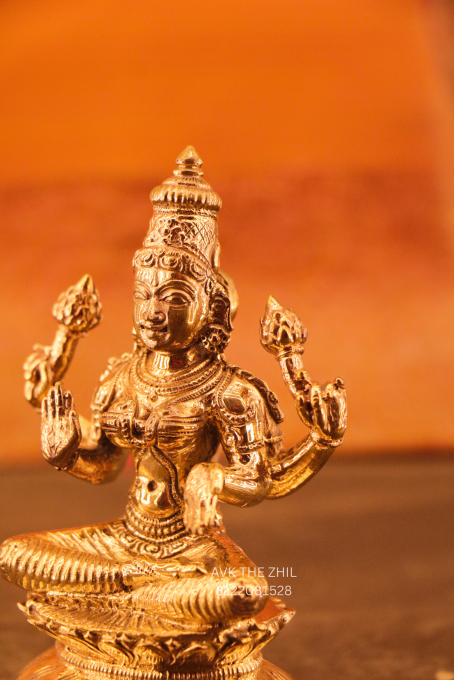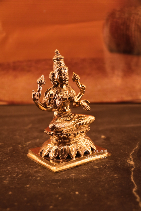 This elegant brass Lakshmi idol showcases Goddess Lakshmi in a traditional seated posture on a beautifully sculpted lotus base. The idol features intricate detailing on the crown, ornaments, and facial expressions, reflecting skilled craftsmanship. Its compact size makes it perfect for home temples, office desks, pooja rooms, or festive decorations.