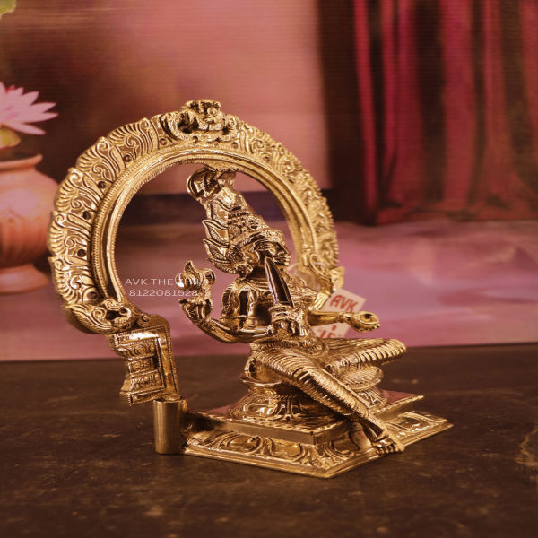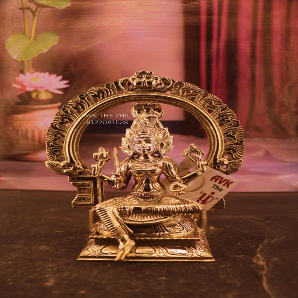 The Amman statue is placed inside an intricately designed prabhai (arch) decorated with ornamental carvings.