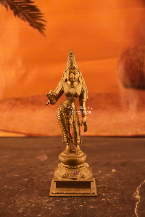 Meenakshi Amman Brass Idol is a finely crafted traditional sculpture representing Goddess Meenakshi, an incarnation of Goddess Parvati. Made from solid brass, this idol symbolizes divine grace, strength, and prosperity, making it ideal for home pooja rooms, temples, and spiritual décor.