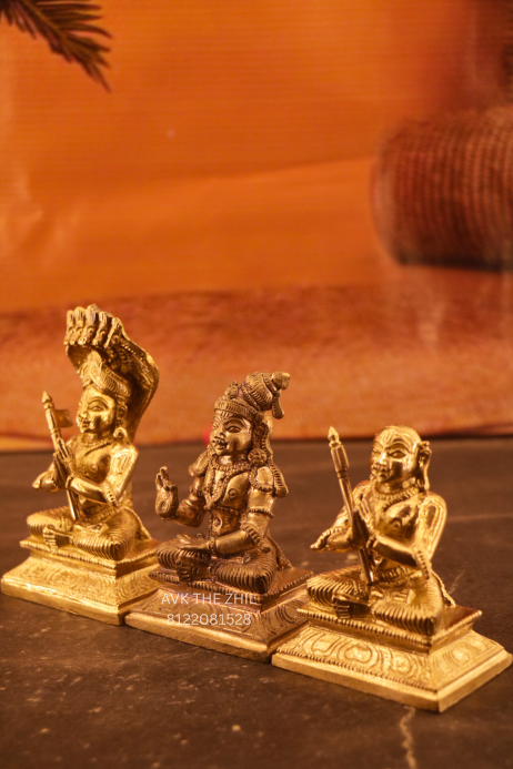 Naalvar Brass Idol Set is a finely crafted traditional sculpture representing the four revered Tamil Saivite saints, cast in solid brass. This compact idol set symbolizes devotion, wisdom, and spiritual harmony, making it ideal for home altars, pooja rooms, and sacred décor.