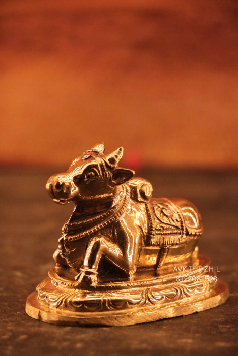 Nandhi Idol is a finely crafted miniature statue representing Nandi, the sacred bull and devoted vehicle of Lord Shiva, symbolizing strength, devotion, and dharma.