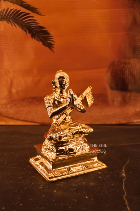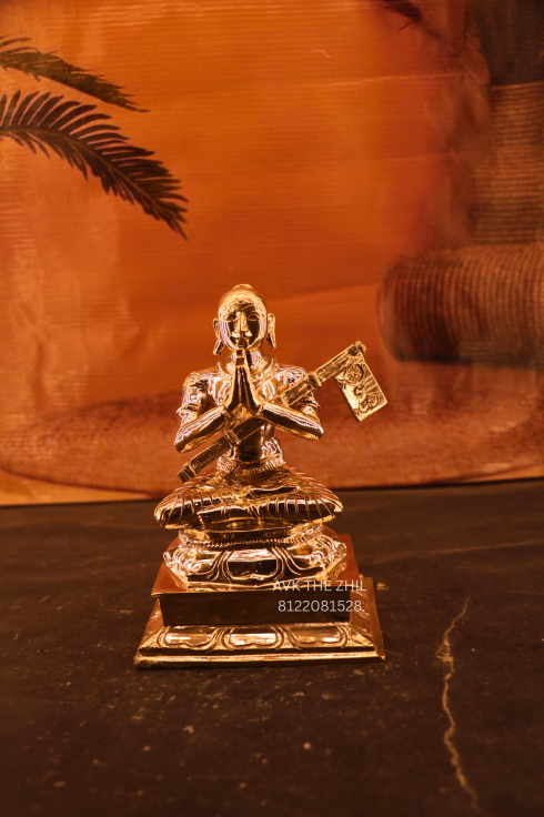 This beautifully designed Ramanujam Brass Statue represents wisdom, devotion, and spiritual knowledge. The idol showcases intricate detailing, from the traditional attire to the sacred manuscripts held in hand, symbolizing Ramanujacharya’s contribution to Hindu philosophy and the Sri Vaishnavism tradition.