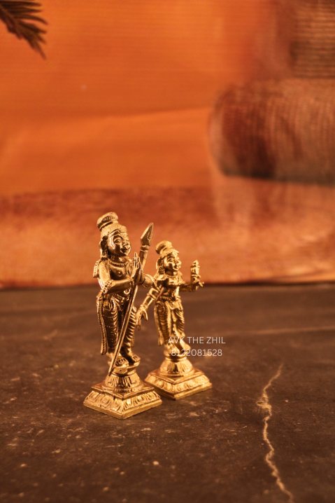 This exquisite Thirumangai Azhvar Brass Idol Set is beautifully handcrafted with intricate detailing that reflects traditional South Indian temple artistry. The idol portrays Thirumangai Azhvar in a graceful standing posture along with his consort, symbolizing devotion, wisdom, and divine service.