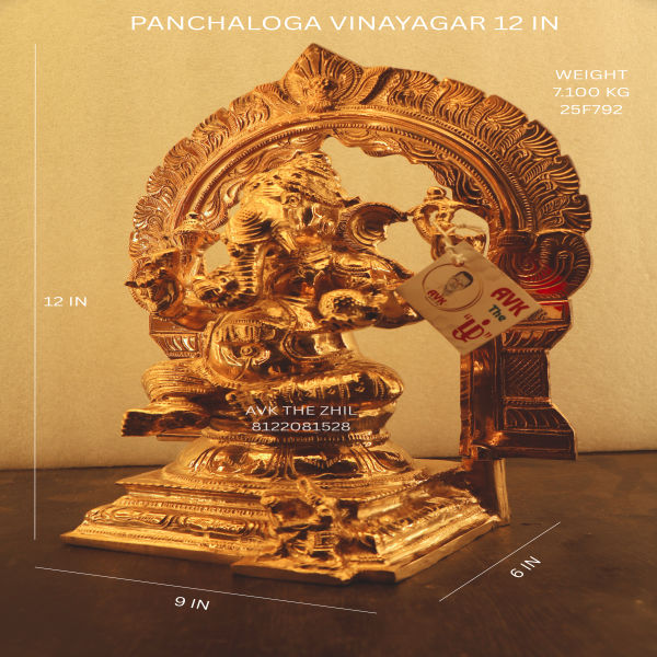 "Vinayagar" (or "Vinayaka") is another name for Lord Ganesha, a widely worshipped Hindu deity. Lord Ganesha is known as the remover of obstacles, the god of beginnings, wisdom, and intellect. He is typically depicted with an elephant head on a human body, with four arms holding various symbolic items. Vinayagar statues are commonly placed in homes and temples for blessings, protection, and success in new ventures. The term "Panchaloga" refers to a traditional five-metal alloy used in making sacred idols, believed to bring spiritual and material benefits.